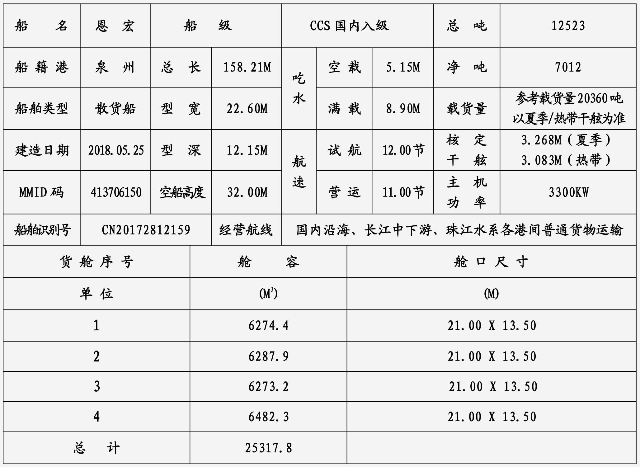 船 級(jí):CCS國(guó)內(nèi)入級(jí)
