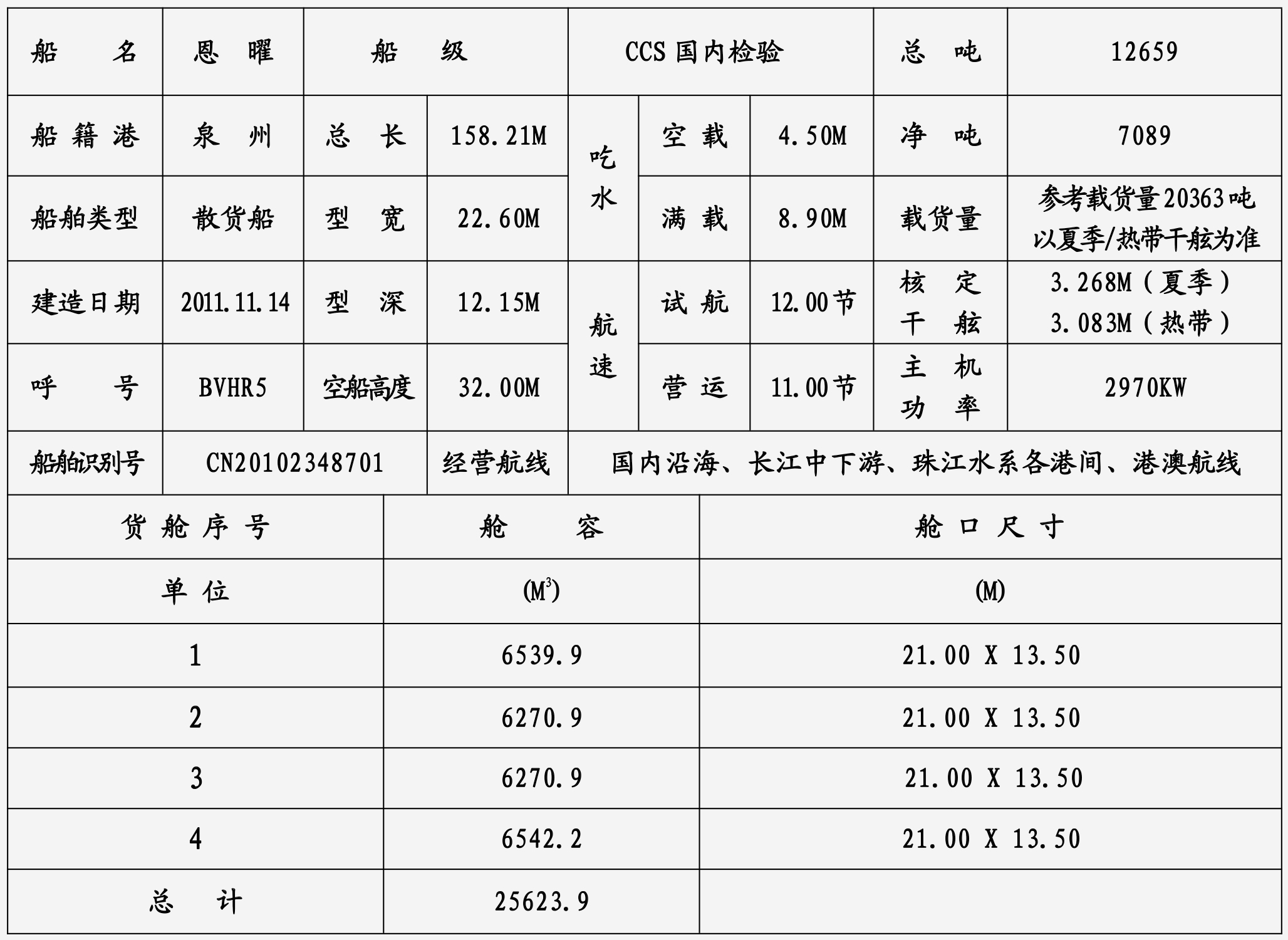 船 級(jí):CCS國(guó)內(nèi)檢驗(yàn)
